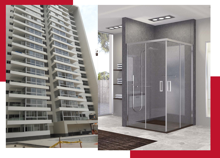 Obras: servicio de instalación de los cristales TEMPLADOS de seguridad, cristales arquitectonicos CURVOS, cristales aislantes INSULADOS, Fachadas Integrales, Coberturas Integrales, en edificaciones residenciales. Además de las Ventanas y Mamparas de Aluminio y cristales ECONÓMICOS para puertas y ventanas en edificios multifamiliares. Esta área cuenta con un personal técnico especializado, garantizando acabados en cristalería de su edificación, esto se logra mediante la asistencia técnica especializada.