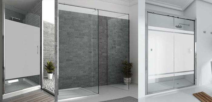 Es ideal para espacios irregulares y reducidos Utilizando accesorios en acero inoxidable para fijación y bisagras Mayor hermeticidad con perfiles de de policarbonato a los 4 lados de las hojas, no permitiendo escape de agua. Utilizando cristal 8mm espesor , obtenemos una puerta agradable y segura.